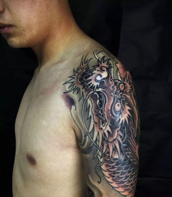 日式手彫刺青作品—半甲龙很感谢客户认可手彫刺青,手彫是日本纹身的手工雕刻技术,时间可以追溯到日本17世纪的江户时代。19世纪,手彫技术被日本黑帮挪用,被用作入会仪式,象征着从此就是江湖中人。在日式传统