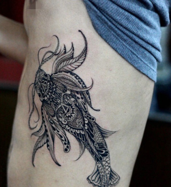 腰部创意鱼文身作品