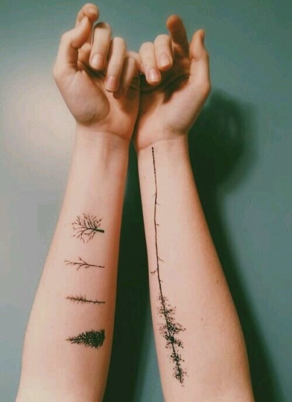 手臂高贵清新的小树纹身图片