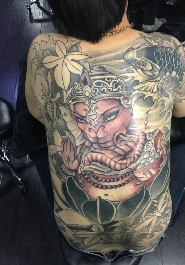 满背个性大象神纹身图片很霸气