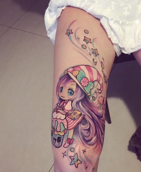 腿部卡通小女生纹身图片很可爱