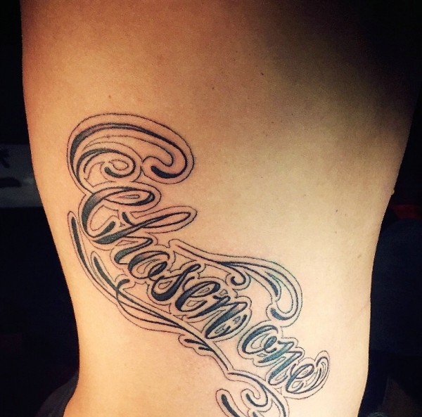 女生后腰纹身黑白灰风格抽象线条纹身图案