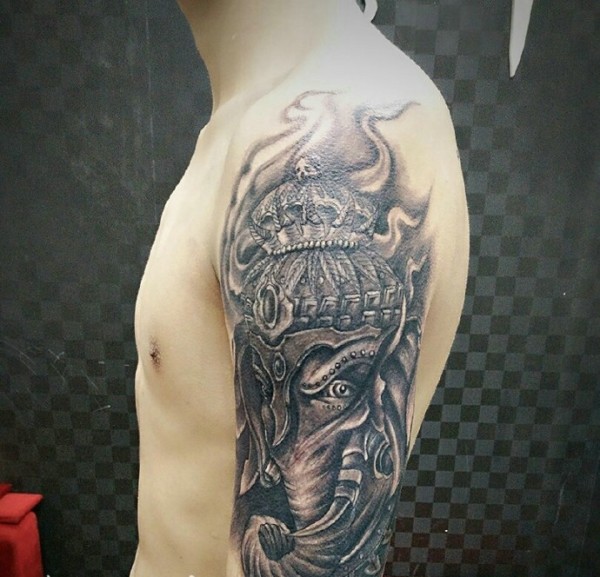 大臂经典完美的黑白象神纹身图片