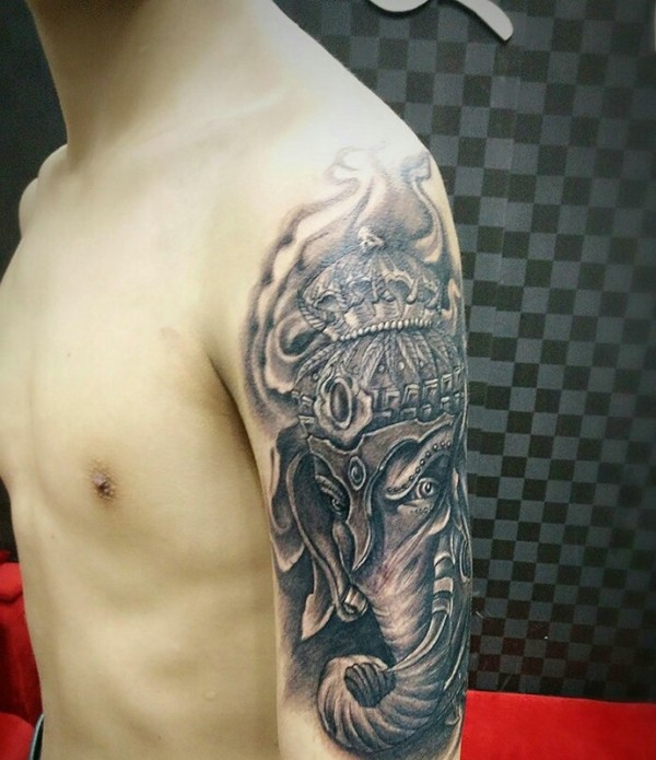 大臂经典完美的黑白象神纹身图片