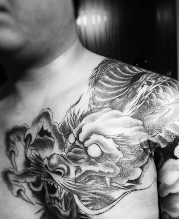 黑白半甲邪龙纹身图片帅爆了