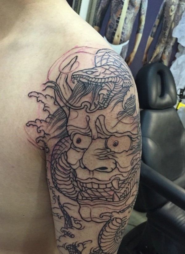 日式手彫刺青作品—半甲龙很感谢客户认可手彫刺青,手彫是日本纹身的手工雕刻技术,时间可以追溯到日本17世纪的江户时代。19世纪,手彫技术被日本黑帮挪用,被用作入会仪式,象征着从此就是江湖中人。在日式传统