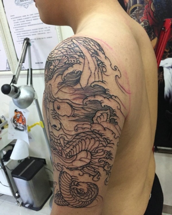 日式手彫刺青作品—半甲龙很感谢客户认可手彫刺青,手彫是日本纹身的手工雕刻技术,时间可以追溯到日本17世纪的江户时代。19世纪,手彫技术被日本黑帮挪用,被用作入会仪式,象征着从此就是江湖中人。在日式传统