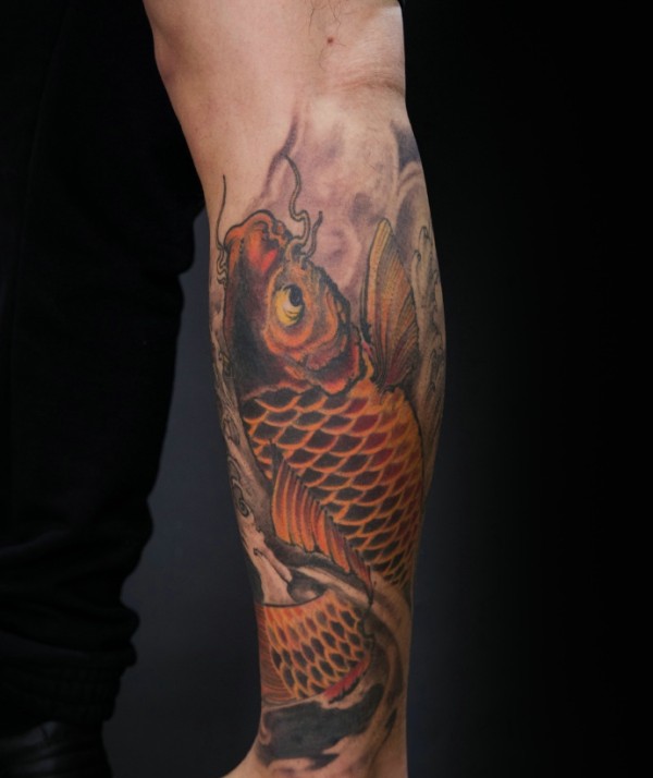 传统鲤鱼花小腿纹身_腿部纹身图案大全_纹身图吧