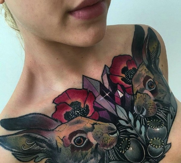 女性大花胸纹身_43张霸气漂亮的女性大花胸纹身图案作品