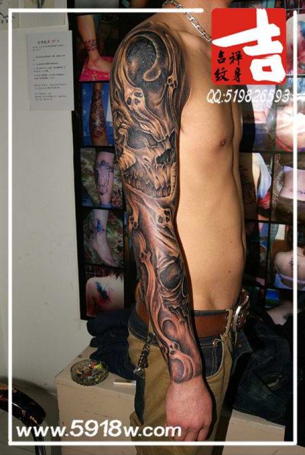 全骷骼花臂