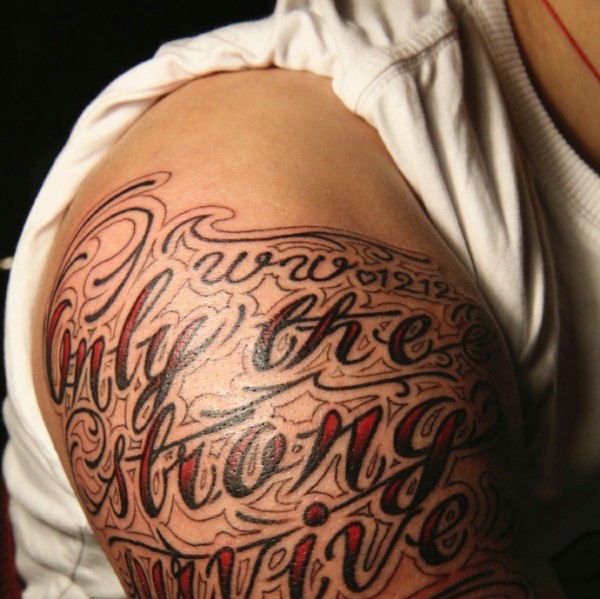 大臂个性时尚英文纹身图片