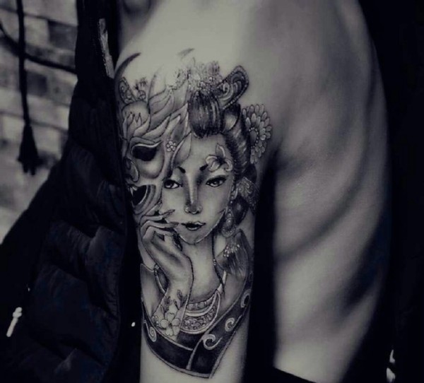 女性人物纹身图案 男生大臂纹身女性人物纹身图案