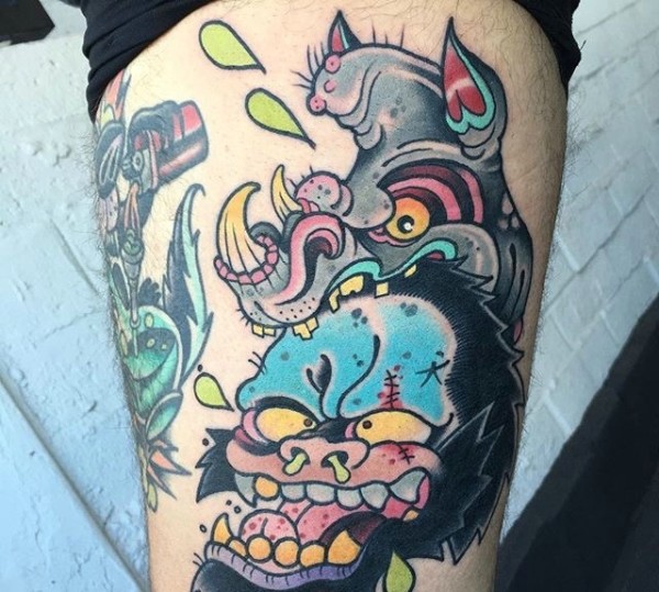 搞笑卡通纹身彩色线条鬼精灵电影里的纹身图案