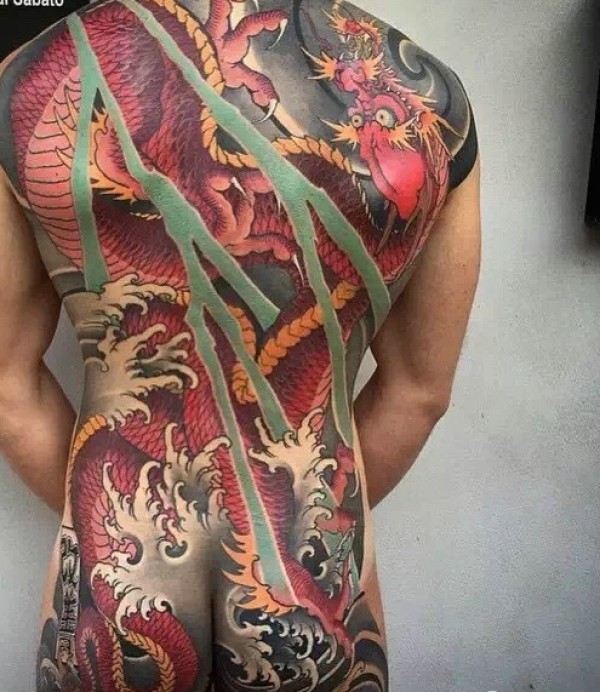 满背闪瞎眼的彩色邪龙纹身图片