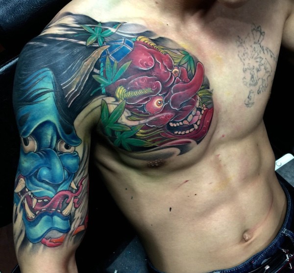 型男异常吸睛的半甲纹身