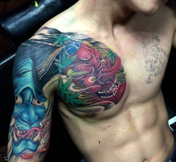 型男异常吸睛的半甲纹身