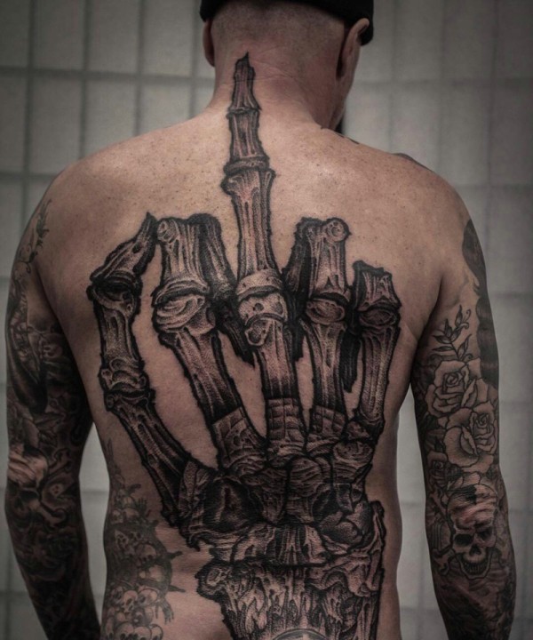 满背的手掌骨感画面纹身
