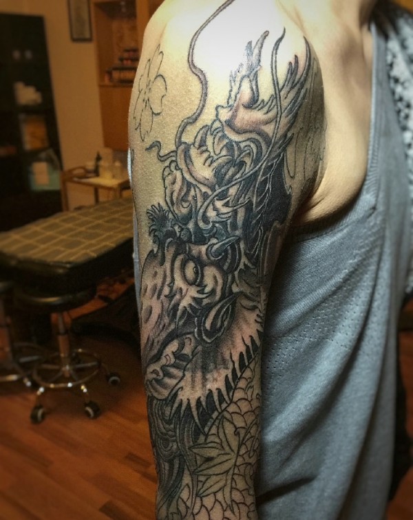 日式手彫刺青作品—半甲龙很感谢客户认可手彫刺青,手彫是日本纹身的手工雕刻技术,时间可以追溯到日本17世纪的江户时代。19世纪,手彫技术被日本黑帮挪用,被用作入会仪式,象征着从此就是江湖中人。在日式传统