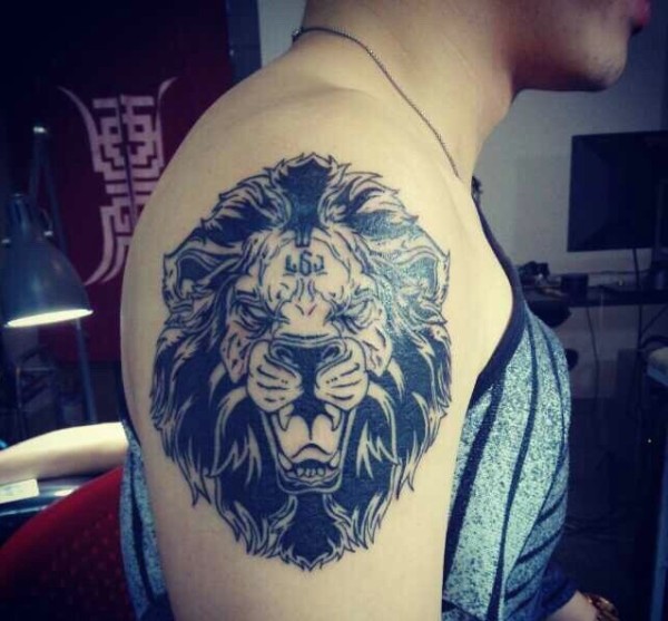 大臂个性十足的狮子头纹身图片
