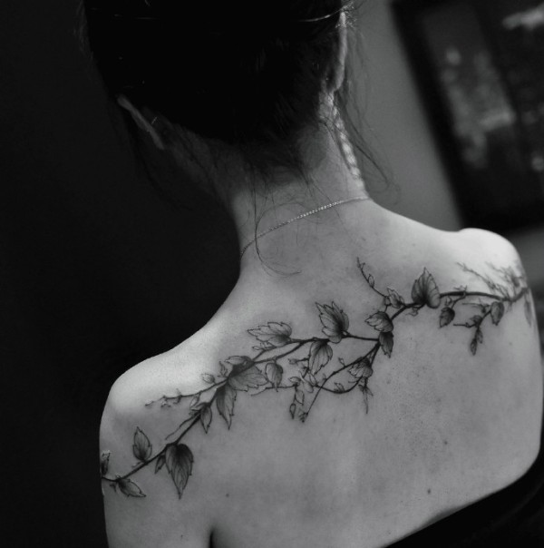 女生肩花纹身_15张女性双肩对称的肩花纹身图案作品图片