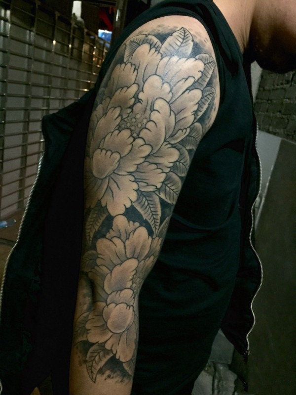 欧美玫瑰纹身 男生手臂上花朵纹身图片