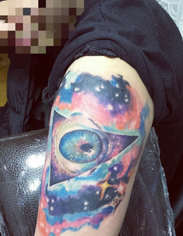 手臂星空灿烂的彩色图腾纹身图片