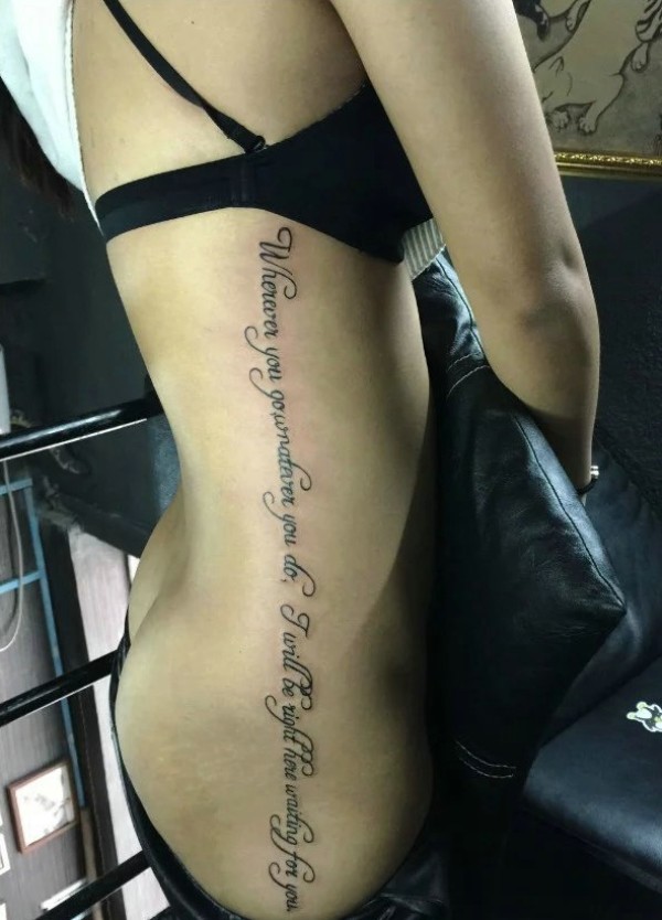 女生后腰纹身黑白灰风格抽象线条纹身图案