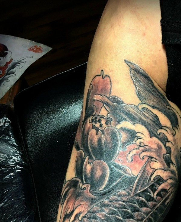 传统鲤鱼花小腿纹身_腿部纹身图案大全_纹身图吧