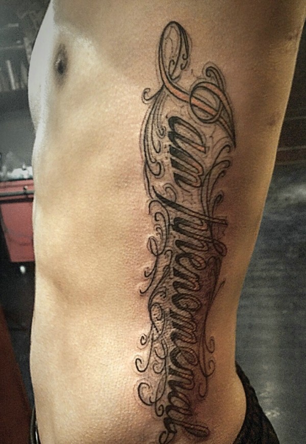 侧腰部大花体英文纹身图片