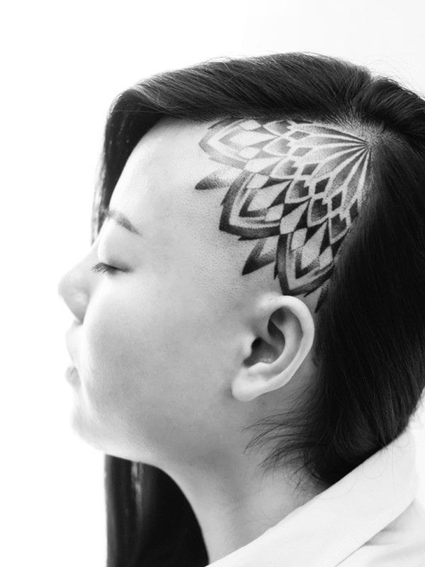 头部纹身图案 个性十足的男生头部纹身图案