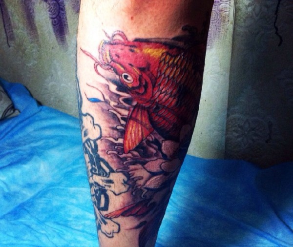 传统鲤鱼花小腿纹身_腿部纹身图案大全_纹身图吧