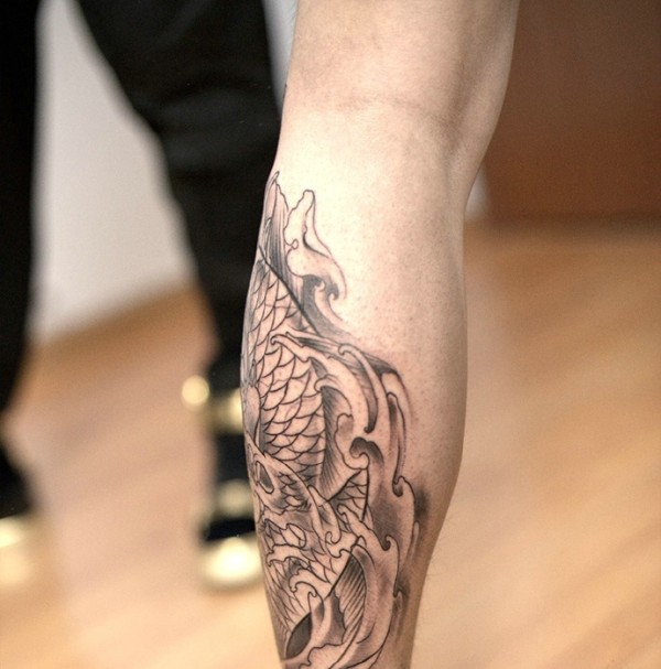 腿部简单传统的黑白鲤鱼纹身图片