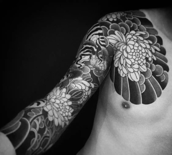 黑白双半甲纹身图片帅气魅力