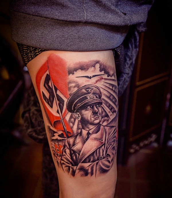 传统花腿纹身--18张传统风格的大花腿纹身图案作品