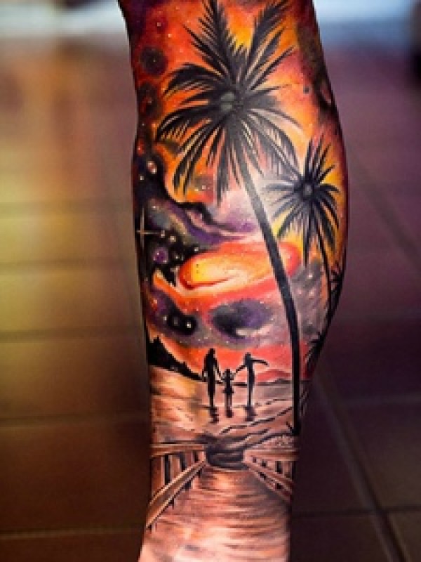 五彩缤纷的腿部图腾纹身图片很耀眼