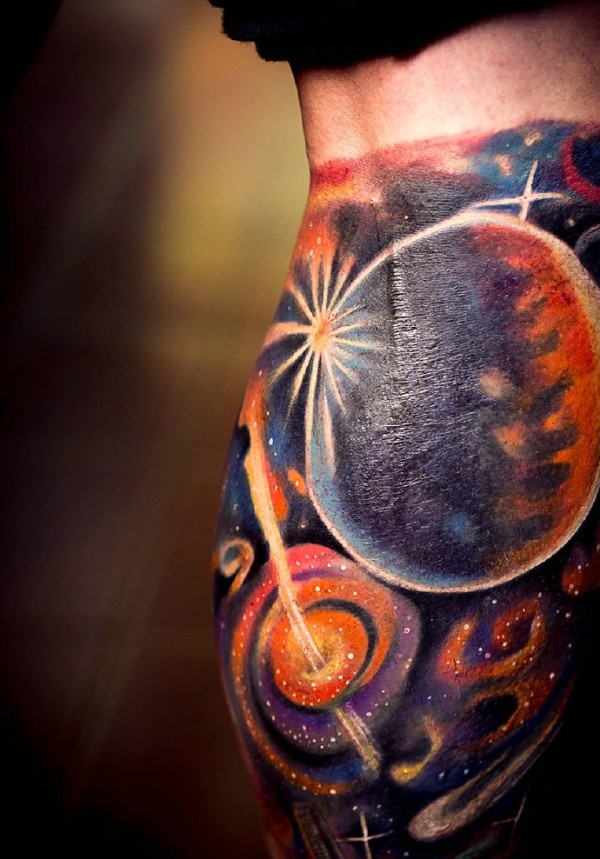 五彩缤纷的腿部图腾纹身图片很耀眼