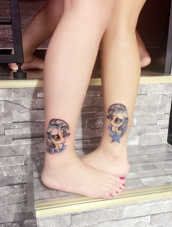 处在小腿部的卡通女生头像情侣纹身图片