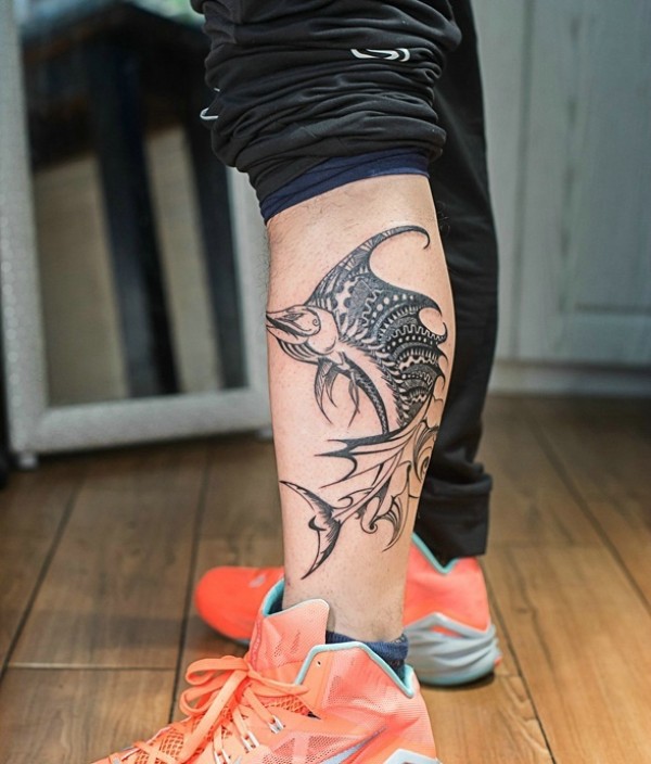 腿部鳌鱼纹身图案_腿部纹身图案大全_纹身图吧
