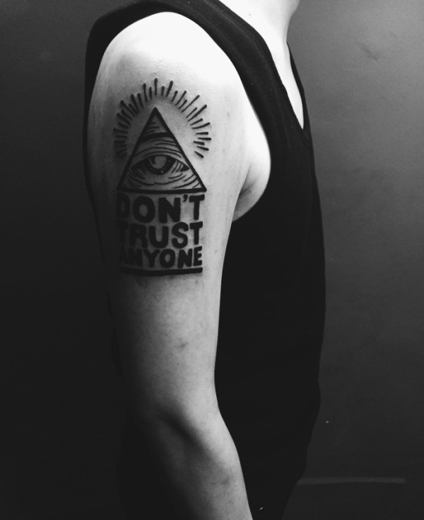 几何眼球和英文单词结合的手臂纹身图片