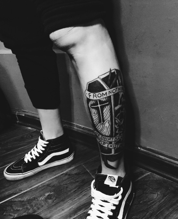 花腿纹身--一组大黑腿纹身图案作品欣赏