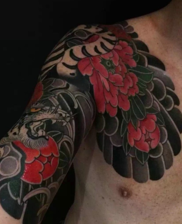 帅气彩色半甲纹身图片回头率高