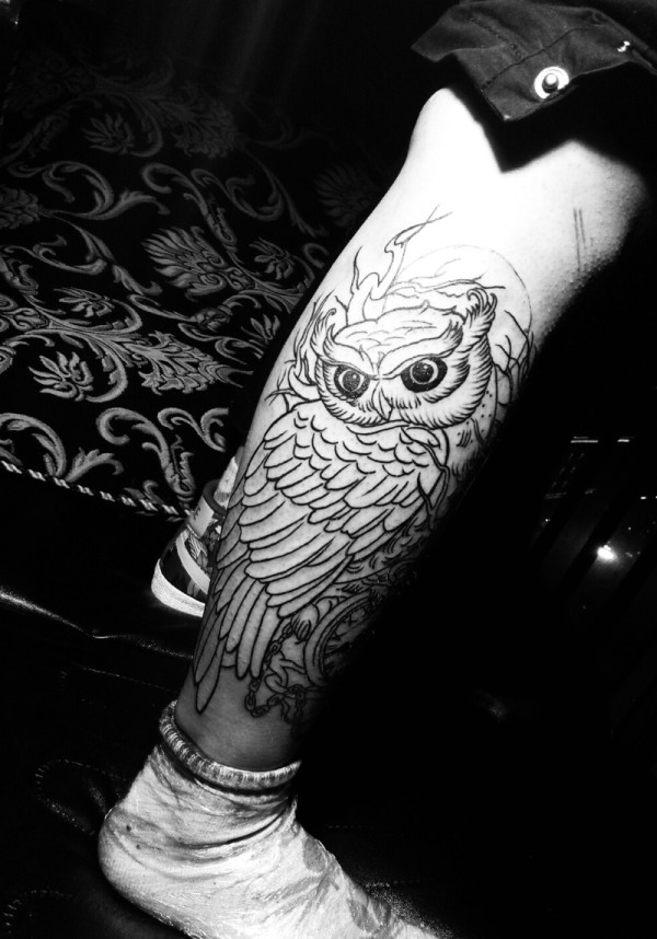 花腿纹身--一组大黑腿纹身图案作品欣赏