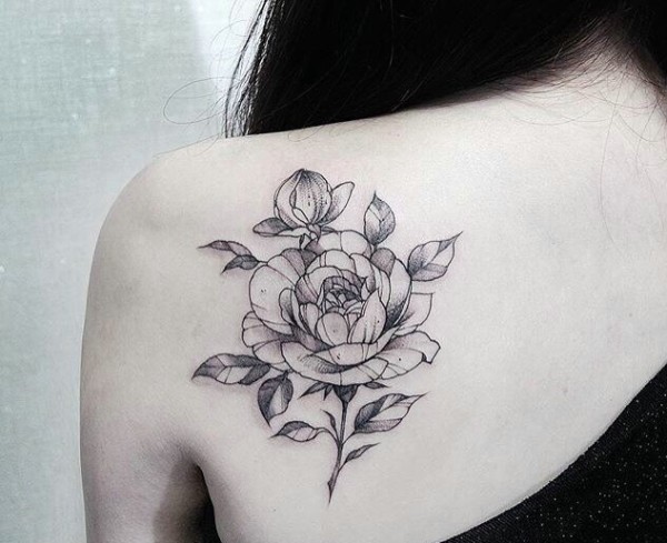 后肩唯美花藤英文图案图片_植物纹身图案大全_纹身图吧