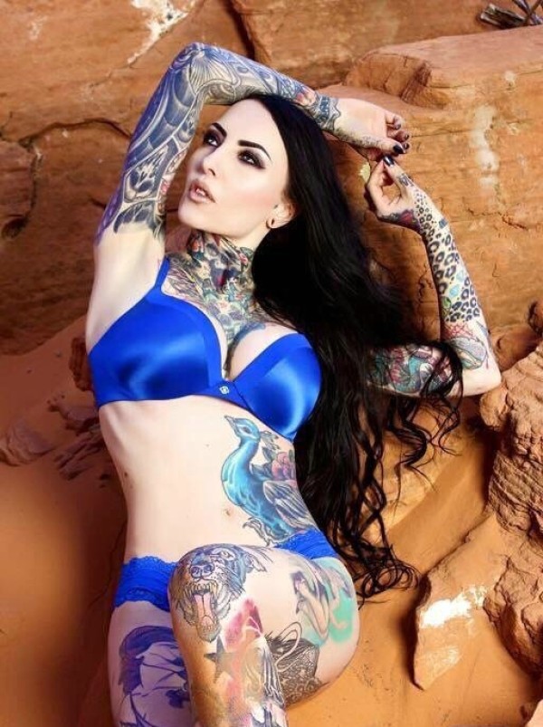 一套大胸美女时尚花臂纹身图片