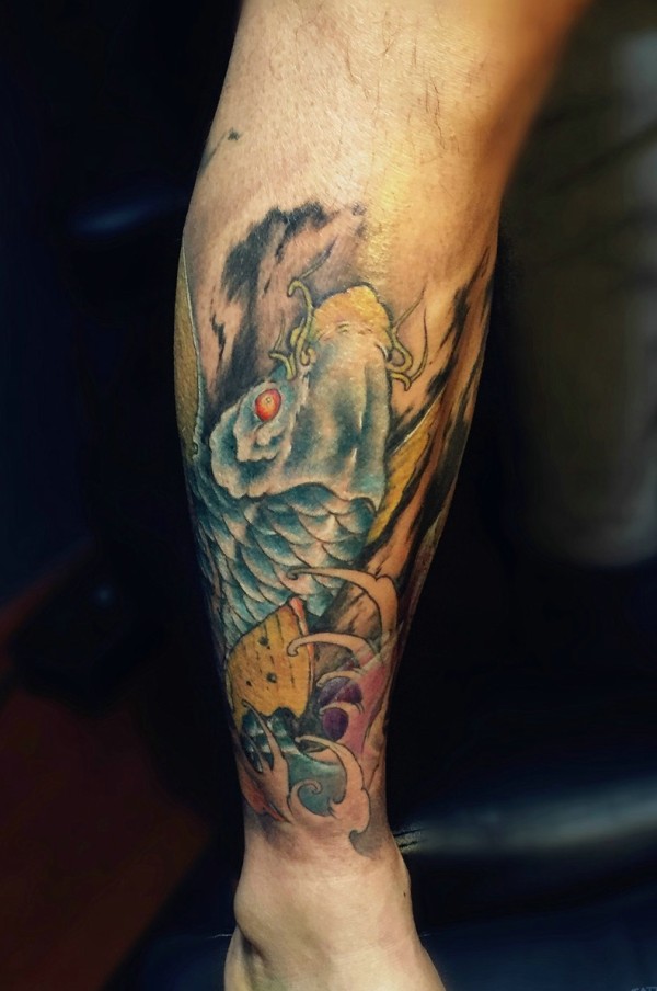 包小腿彩色鲤鱼纹身图片耀眼光芒