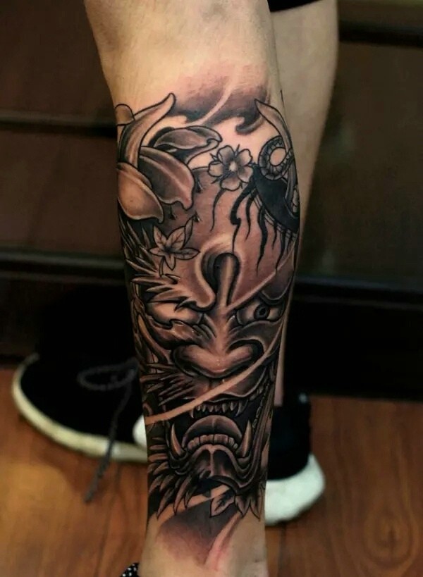 日式风格的传统花腿纹身作品欣赏
