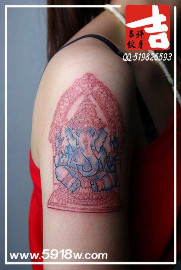 手臂黑灰象神_一组12张手臂上的黑灰象神纹身图案作品欣赏