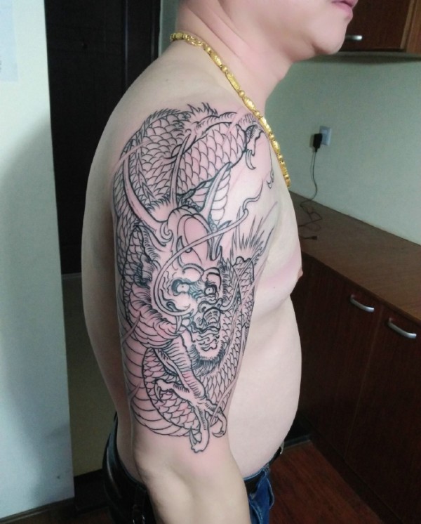 大臂老传统经典的邪龙纹身图片