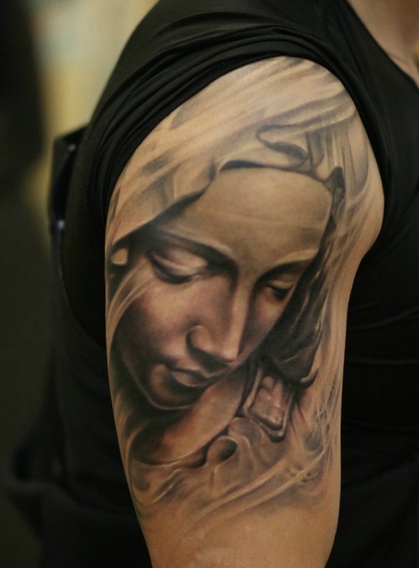女性肩部肖像刺青_肖像纹身图案大全_纹身图吧