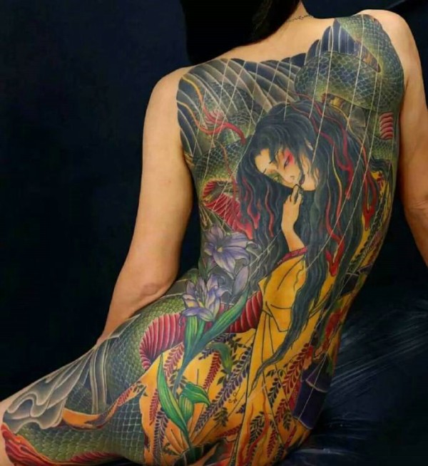 颜色惊艳的满背经典图腾纹身图片